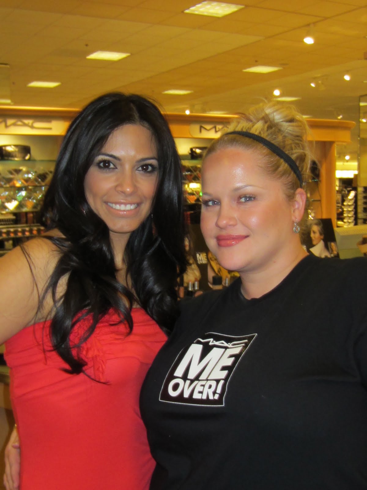 Today I had lots of fun with my two favorite girls, Amanda and Velma, at the MAC counter at Nordstroms Galleria Mall in Dallas. Amanda who happens to be a wonderfully talented makeup artist for MAC applied Velma's makeup using the MAC Me Over Collection. If you haven't had a chance to see this collection you are missing out! I love everything! My favorite eye shadow so far is called Carbonized. It is gorgeous! Amanda used Carbonized and Moleskin for Velma's soft smokey look.